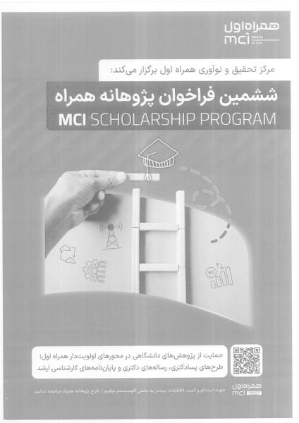 همچنین در صورت وجود هرگونه سوال یا ابهام میتوانید با ایمیل info.Grant@mci.ir یا شماره موبایل 09912707249 ارتباط حاصل نمایید.